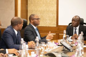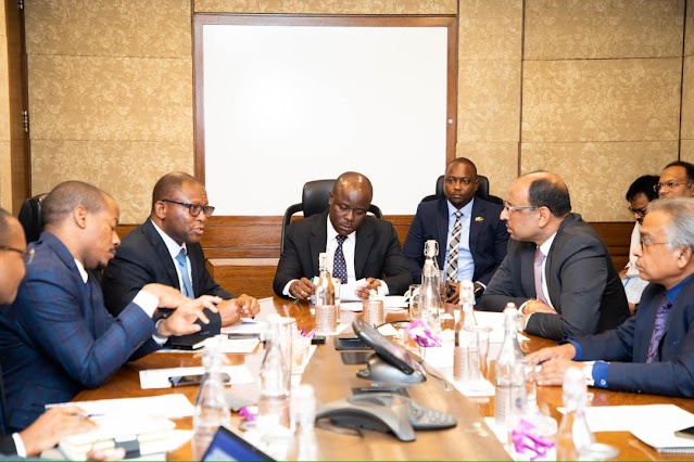 Waziri wa Maji Mhe Jumaa Aweso akiwa nchini India kwenye ziara ya Mhe Rais wa Jamhuri ya Muungano wa Tanzania Dkt. Samia Suluhu Hassan, amekutana na kufanya mazungumzo na wadau wa sekta ya Maji hususani viongozi wa makampuni ya wakandarasi wanaotekeleza Mradi mkubwa wa Maji nchini Tanzania wa MIJI 28 ukumbi mdogo wa ITC MAURYA Hotel.